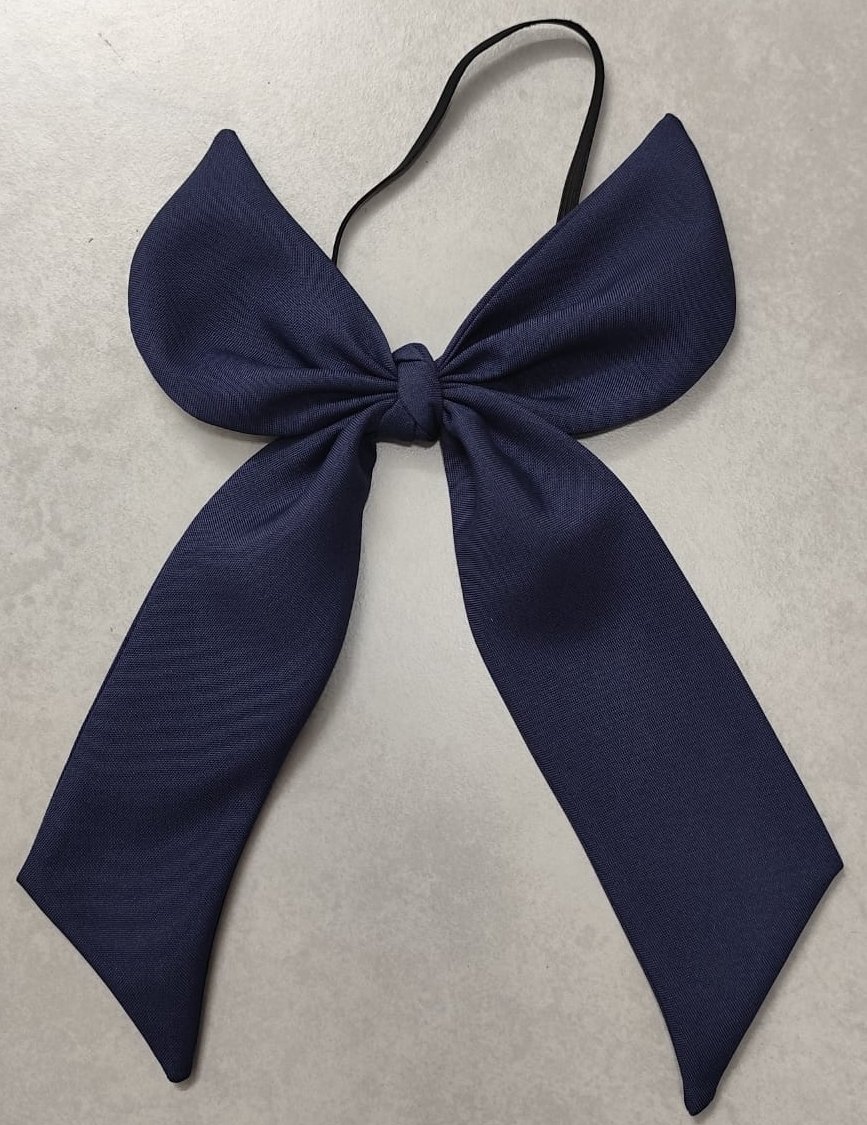 Moña escolar confeccionada a mano, ideal para uniformes escolares. Incluye elástico resistente para una colocación cómoda y segura.